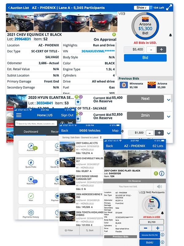 Browse our auctions, iaai.com and copart.com to see what cars are currently at auction. There are over 100 auction houses daily with over 500,000 cars per day. New cars come up every minute so check back often.